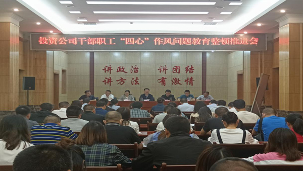 為進一步推進“四心”作風教育整頓工作走深走實,4月29日上午,市投資公司召開“四心”作風問題教育整頓推進會,對教育整頓工作進行再部署、再落實、再推進。公司領導班子成員、各部門及子公司負責人、全體職工參加會議。