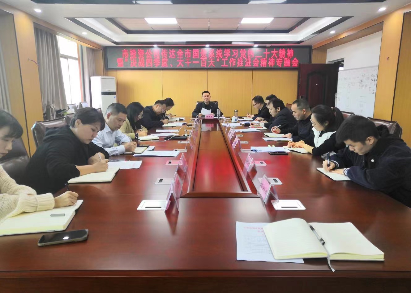 市投資公司黨委傳達(dá)全市國資系統(tǒng)學(xué)習(xí)黨的二十大精神暨“決戰(zhàn)四季度、大干一百天”工作推進(jìn)會精神