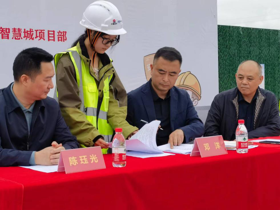 儀式上,全體參建人員共同宣讀安全生產誓詞,三方責任主體分別簽署《安全生產責任書》《質量、進度、安全文明施工責任書》。
